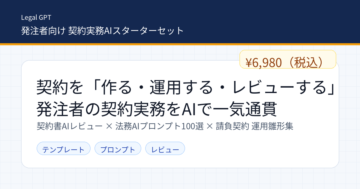 迷う工程を減らして、アウトプット(修正文案・交渉論点・運用テンプレ)に直結させるスターターセットです。