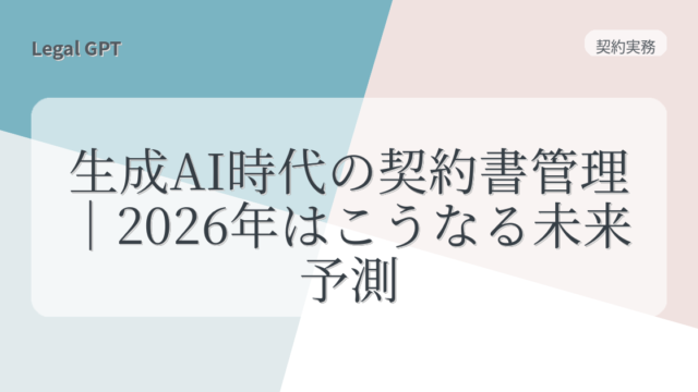 契約実務 生成AI時代の契約書管理|2026年はこうなる未来予測 2025年8月19日 fujita_admin https://legal-gpt.com/wp-content/uploads/2025/06/9cfed54331b16c43d320b81fc65f5b29.png Legal GPT