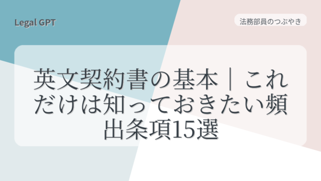 法務部員のつぶやき 英文契約書の基本|これだけは知っておきたい頻出条項15選 2025年8月27日 fujita_admin https://legal-gpt.com/wp-content/uploads/2025/06/9cfed54331b16c43d320b81fc65f5b29.png Legal GPT