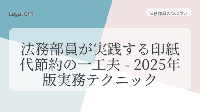 法務部員のつぶやき 法務部員が実践する印紙代節約の一工夫 - 2025年版実務テクニック 2025年9月11日 fujita_admin https://legal-gpt.com/wp-content/uploads/2025/06/9cfed54331b16c43d320b81fc65f5b29.png Legal GPT