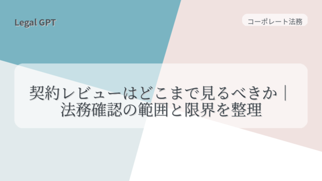 👉 この章のポイント:ここまでを押さえれば、主要な契約類型ごとに「最低限チェックすべき観点」を頭に入れた状態で審査に臨めるようになります。