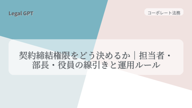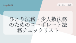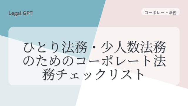 ひとり法務・少人数法務であっても、簡易チェック表、保存場所の固定、稟議への反映、再チェックトリガーの明記といった最低限の型を整えるだけで、担当者依存と形骸化はかなり減らせる。完璧な規程よりも、回り続ける型の方が、コーポレート法務の現場には向いている。