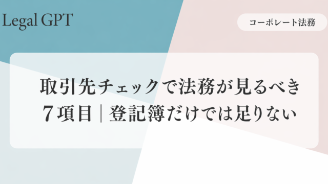 - 第30話取引先チェックで法務が見るべき7項目|登記簿だけでは足りない