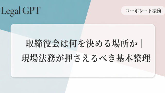 - 第24話取締役会は何を決める場所か|現場法務が押さえるべき基本整理