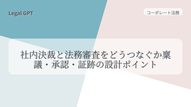 | 総務任せで法務が最後にしか見ない | 準備①〜②段階 | 役割分担を明文化し、法務が前工程から参加するスケジュールを引く |