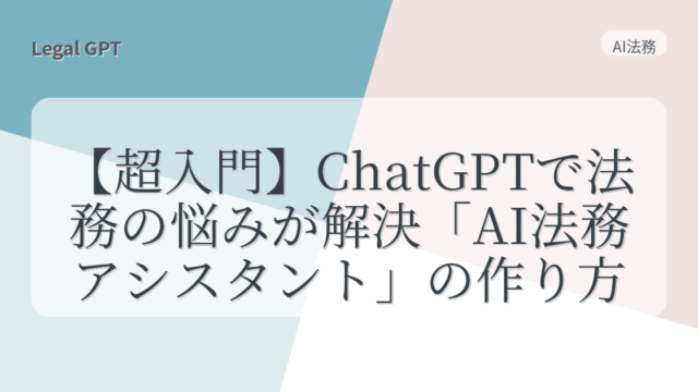 AI法務 【超入門】ChatGPTで法務の悩みが解決?「AI法務アシスタント」の作り方 2025年7月8日 fujita_admin https://legal-gpt.com/wp-content/uploads/2025/06/9cfed54331b16c43d320b81fc65f5b29.png Legal GPT